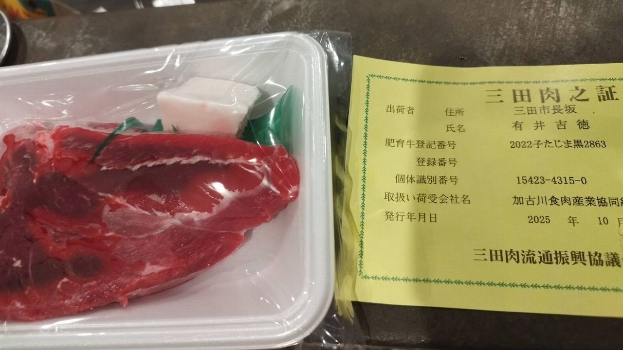 証明書付きの立派なお肉です。